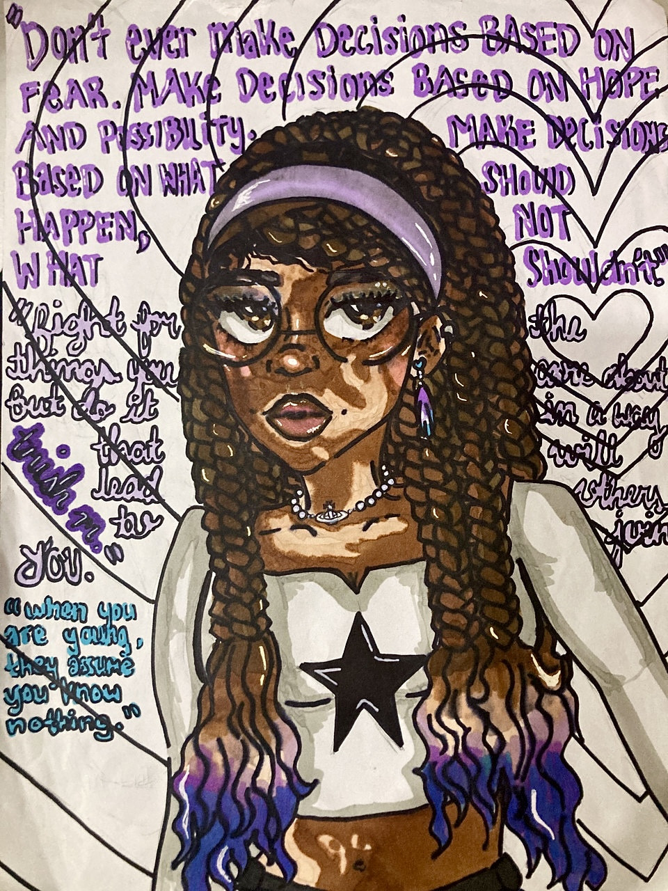 Artist Statement: I decided to make jewelry because it looks pretty and I like to wear jewelry. I imagine wearing this kind of jewelry when you’re on vacation like in Hawaii or some other colorful tropical place. I hope you enjoy my art because I had fun making it!