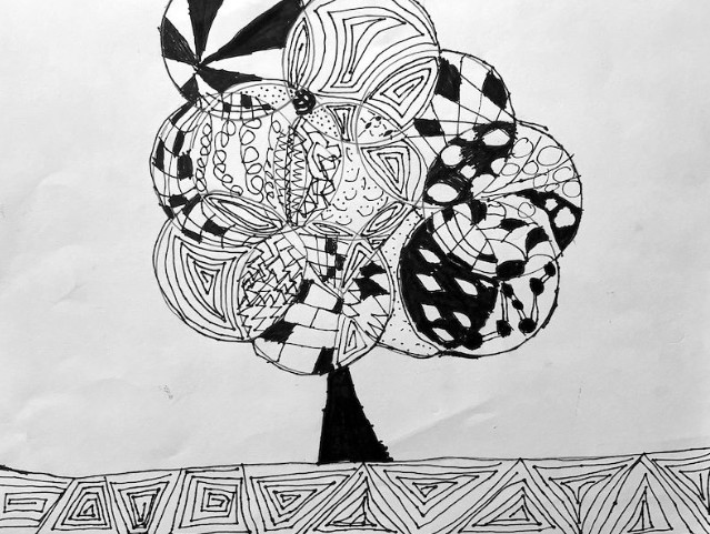 Artist Statement: This piece is named The Sunset on Tuesday because it is a sunset. And the event it was inspired by happened on a Tuesday. It is made completely out of tape.