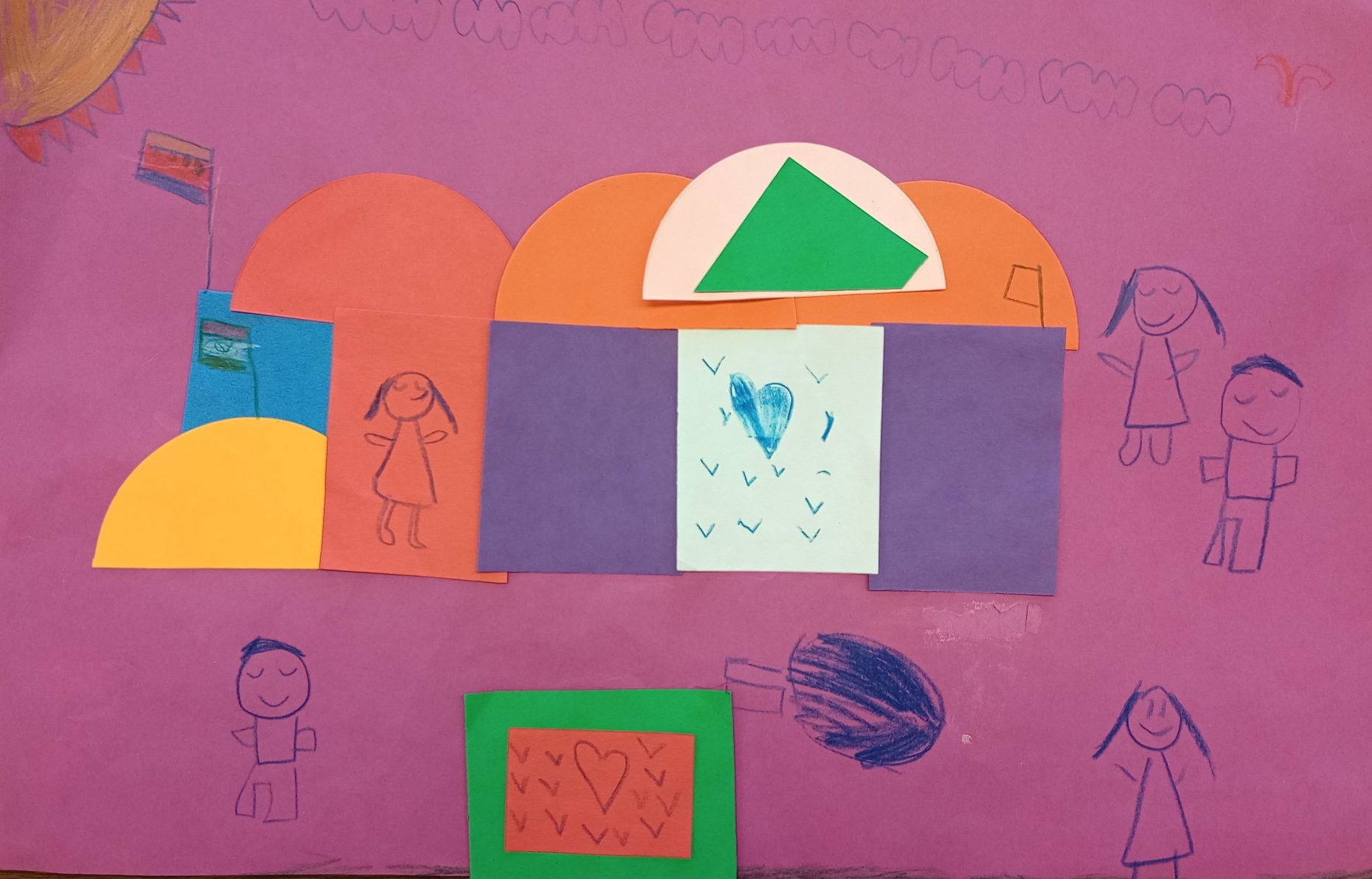 Materials: Cut Construction paper, glue, colored pencils