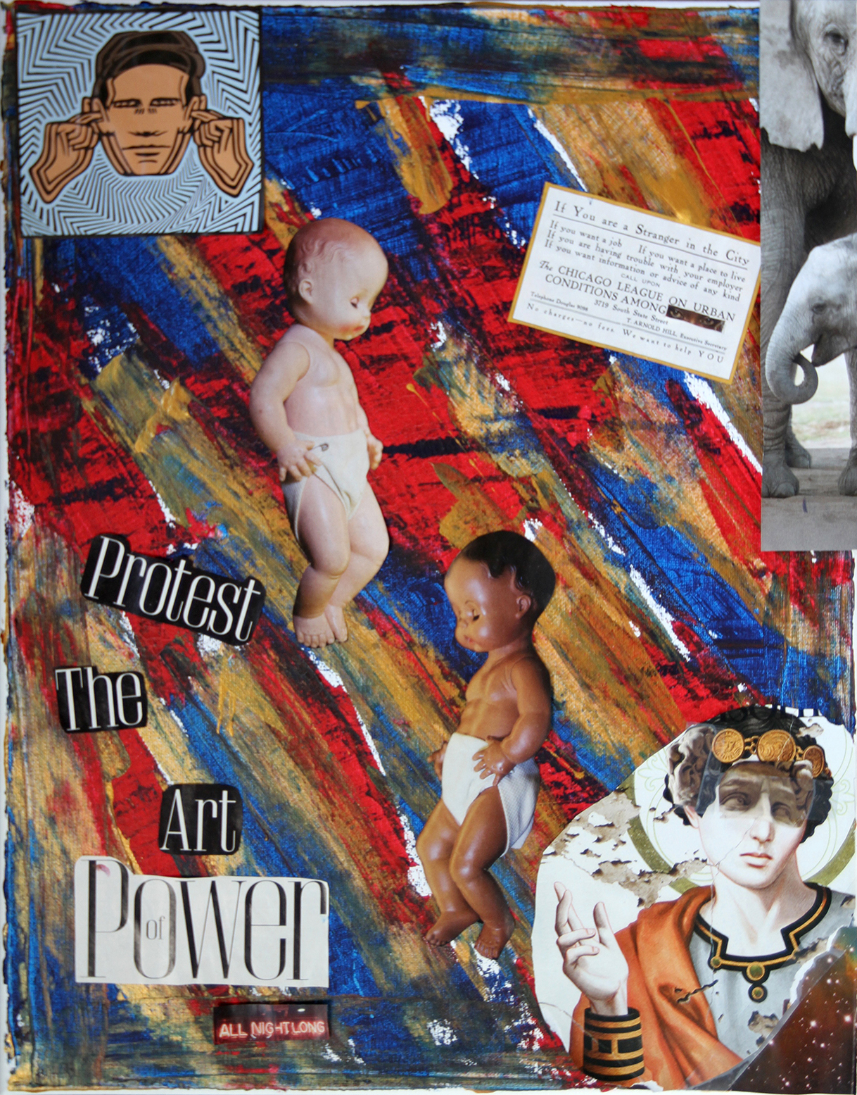 Materials: Acrylic on canvas; Mixed Media; Newspaper