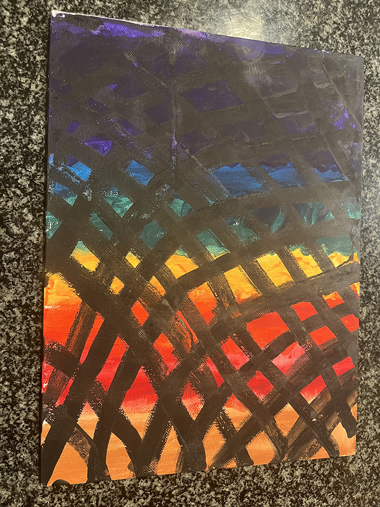 I painted a picture of a rainbow waffle cone because it reminds me of a time when my dad took me to Rainbow Cone for some ice cream. I dream about going back!