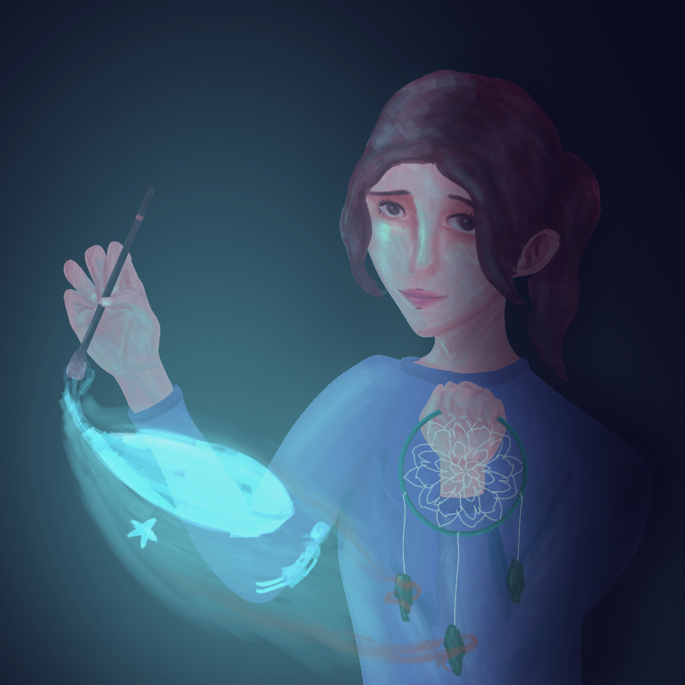When creating this artwork, I tried to improve my ability to add symbols to an artwork. With the paintbrush and the dreamcatcher, I think I reached that goal. I tried to improve my skills in adding highlights and shadows, and I do think I am improving.