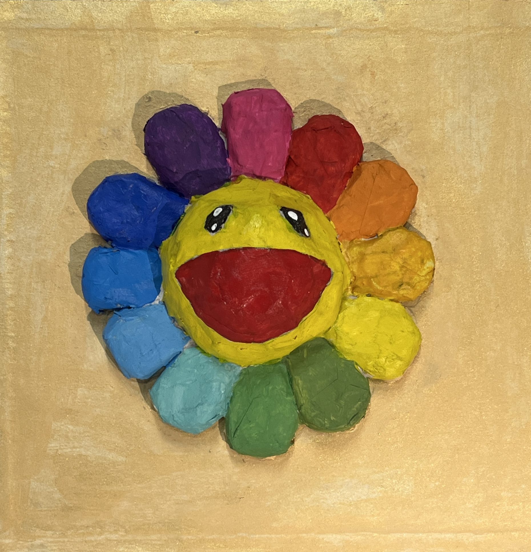 “I’ve always had a fascination with Takashi Murakami’s art style but mainly his iconic flower. I wanted to make some type of art piece with this flower but struggled to find a medium that could convey the dimension I feel its shape holds until I was introduced to paper mache. I believe that it can properly convey the simplistic round shape with more depth than a simple canvas or piece of paper can.”