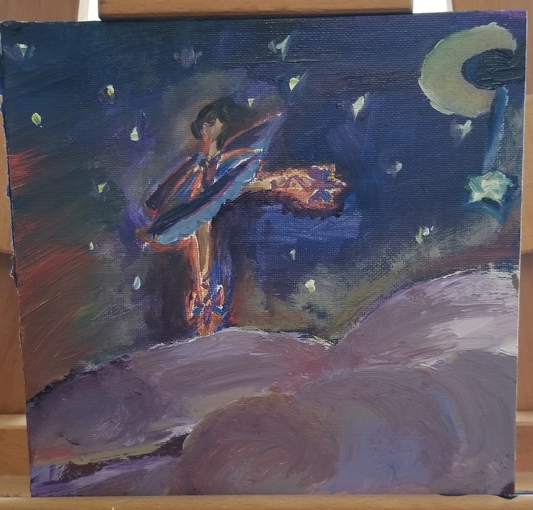 I want to become a fashion designer and I often dream of people using my designs. Like in this case, a ballerina is dancing under the moon wearing the costume I designed.