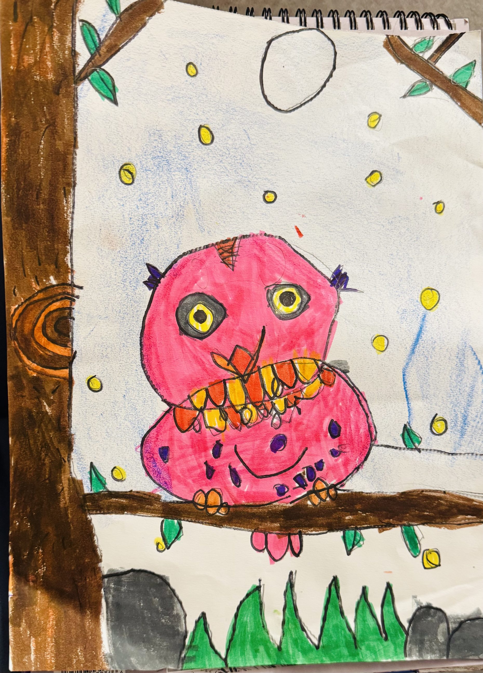 A pink lady owl sitting on the branch of the tree singing hoot hoot and enjoying her night.