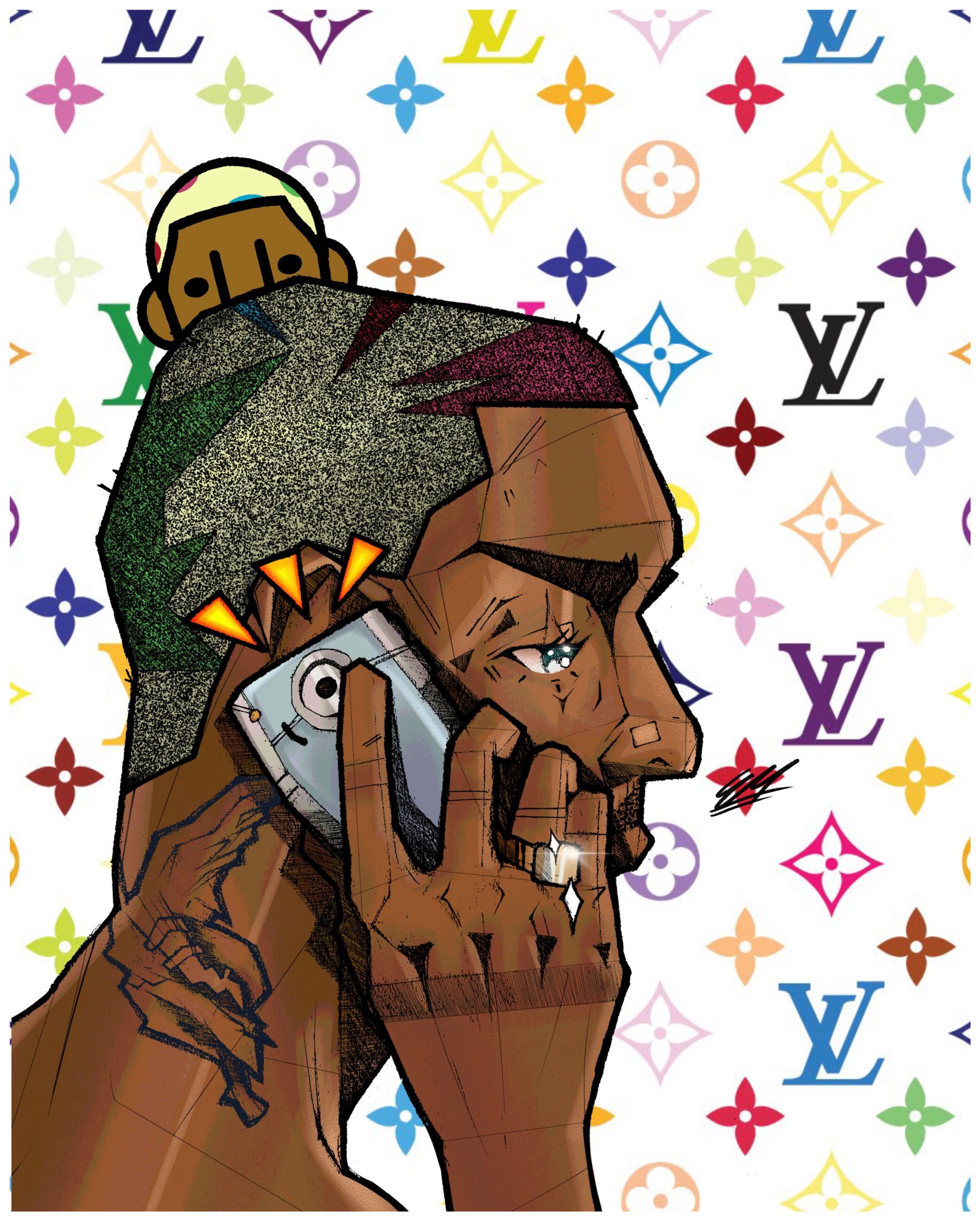 This piece connects deeply with the topic of “Dreams”. The background of the piece correlates with the brand Pharrell Williams is currently operating and creative director for, Louis Vuitton.