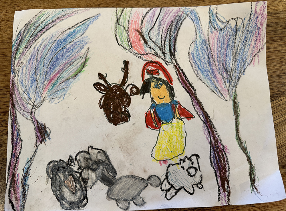 This is a picture of Snow White and the animals she meets in the magical forest.