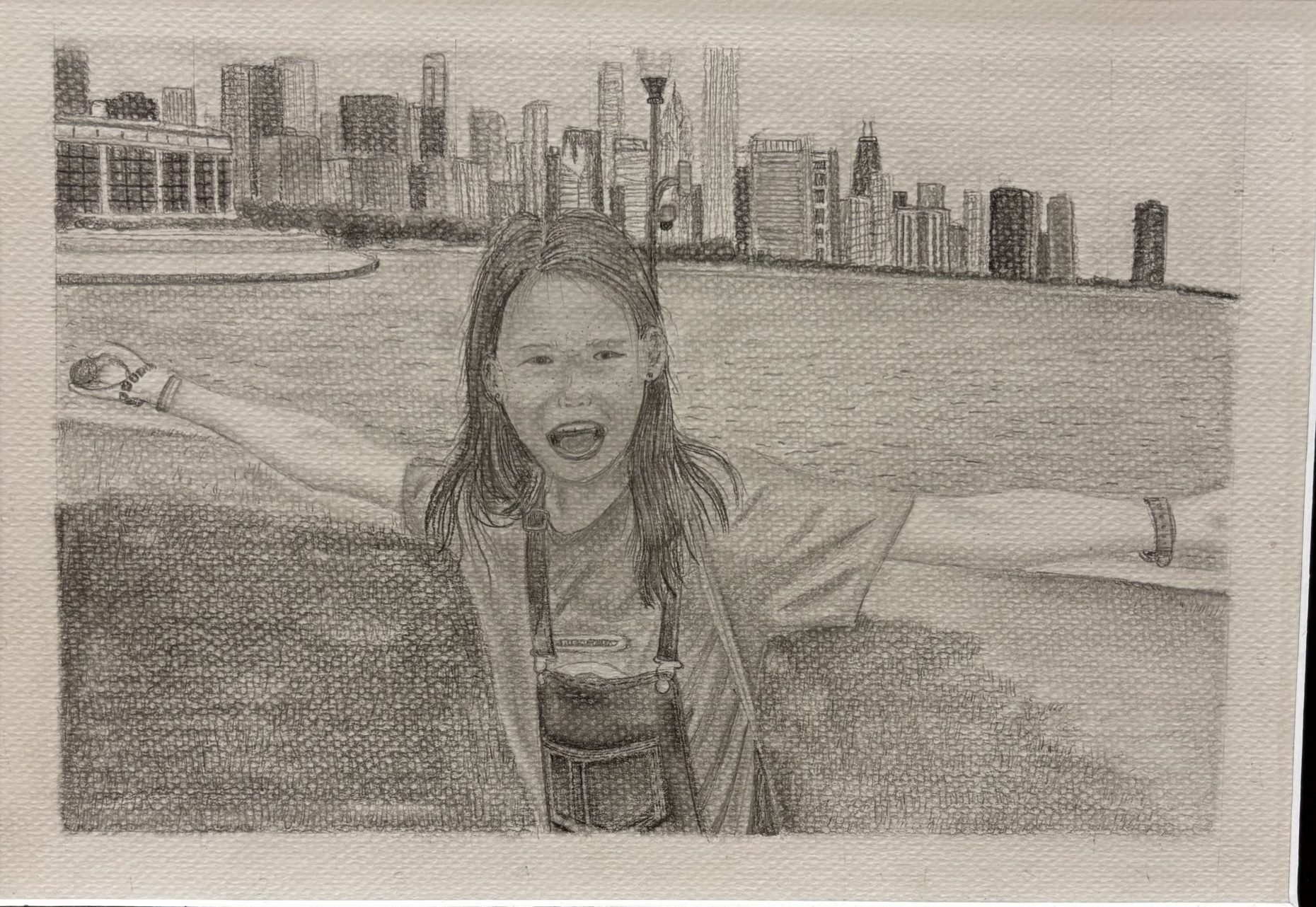 The black and white filter of the image represents a memory that is fading but that I still holds a place in my heart. Including the skyline in the background combined with my expression and outlift helps to communicate the joy I felt at the time. This connects back to the idea that our memories are such a big part of our lives and the way were can recall these memories I through the use of sight.