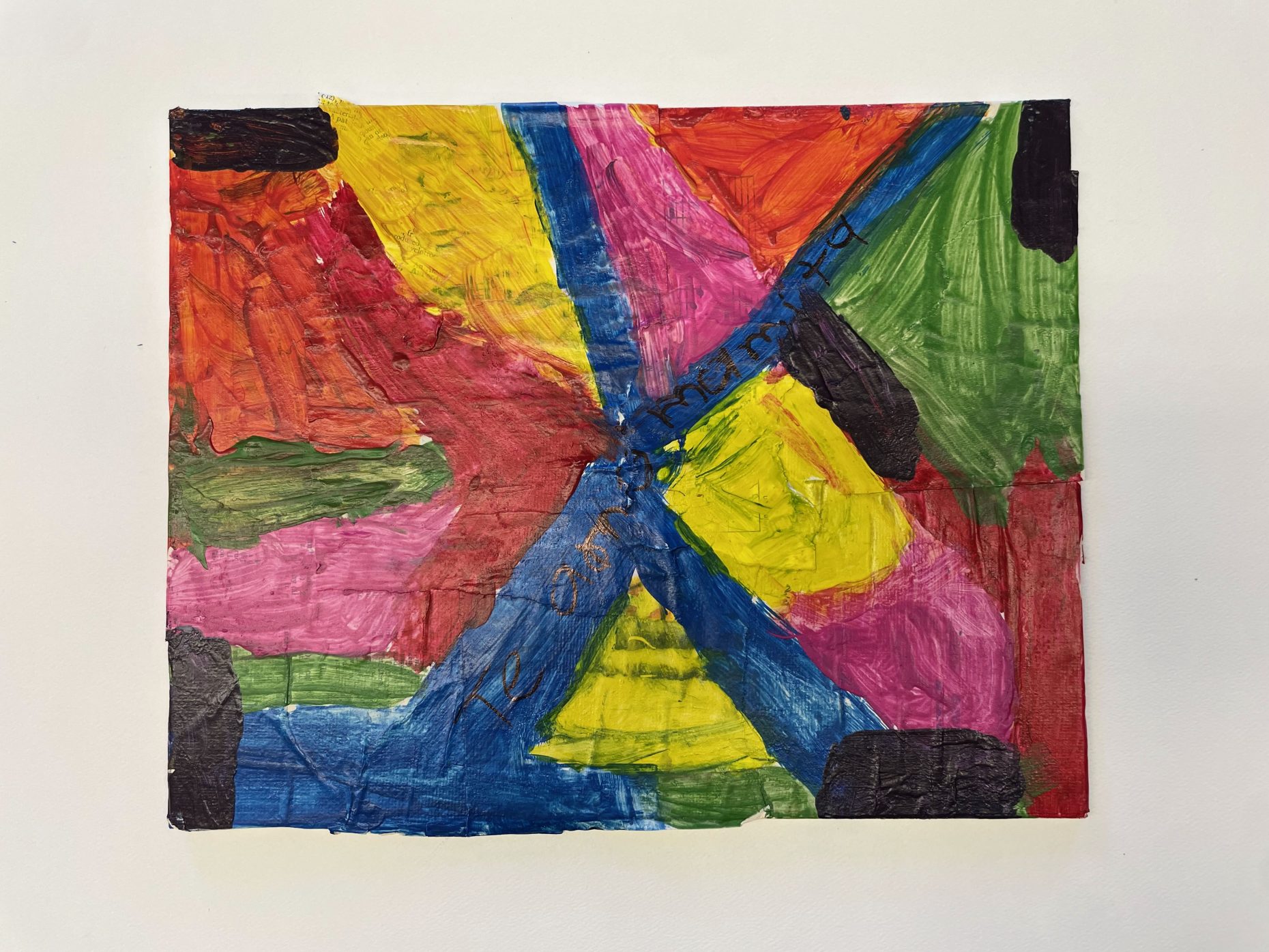 Materials: Acrylic paint, textured paper, and mod podge on canvas