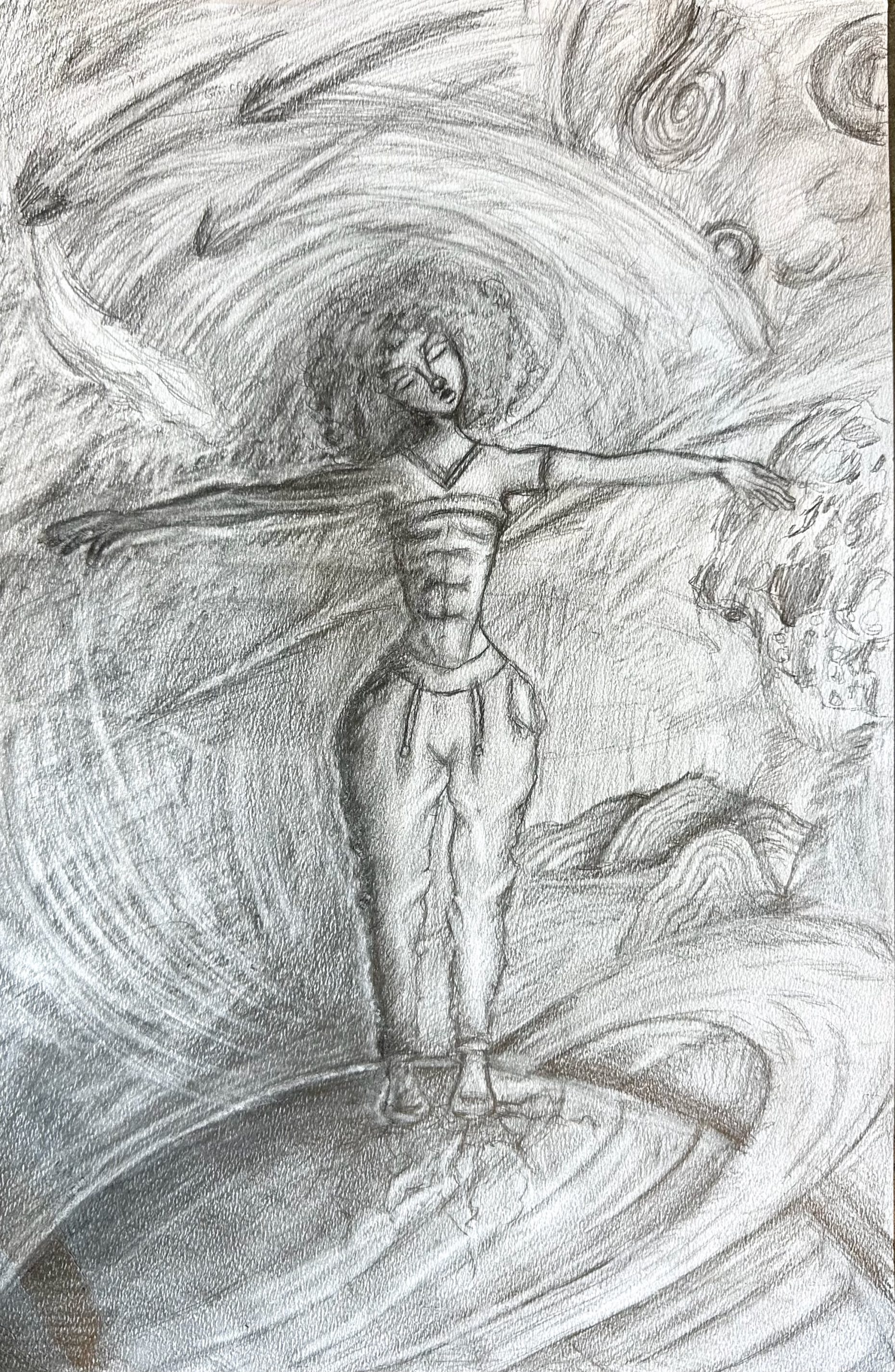 I created this drawing to show a connection between humans and nature. I wanted to show how powerful yet peaceful this can be. It’s a reminder that we are all connected to something bigger than ourselves.