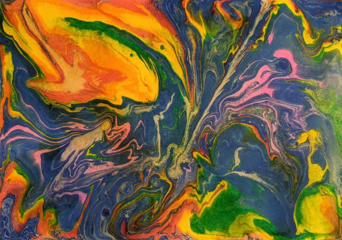 A young woman lies submerged in dark water, her red dress billowing around her as she stares directly ahead. The contrast between the vivid fabric and the murky water symbolizes the tension between holding onto one’s cultural identity and the forces that threaten to wash it away.