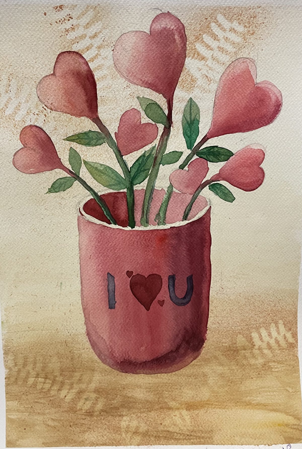 My work represents some of my personal dreams and goals. I used my love of painting and colors to create a vivid background in four sections to frame four symbols and words that represent who I am. I hope to play on the USWNT in the Olympic games someday because I Live and Love Soccer.