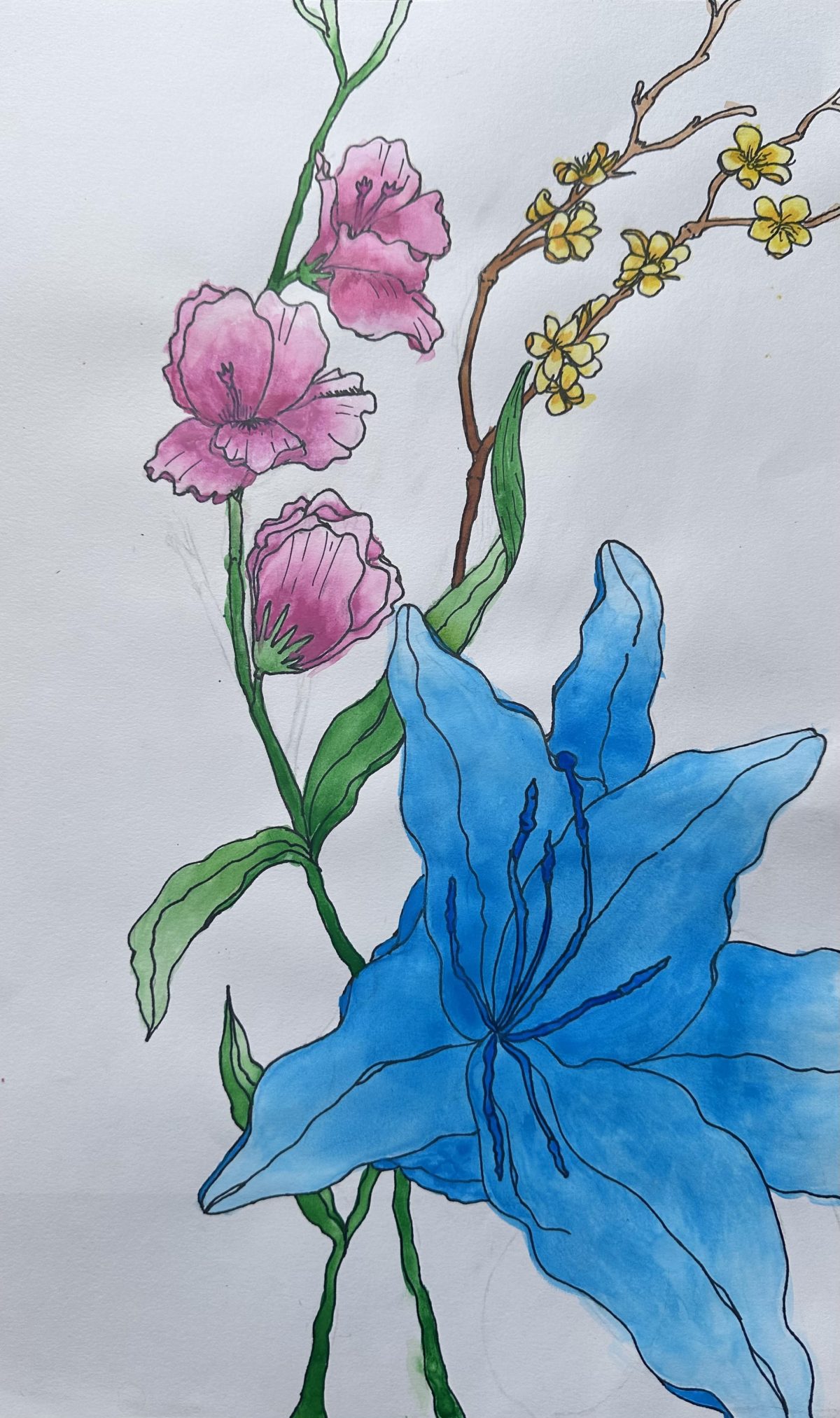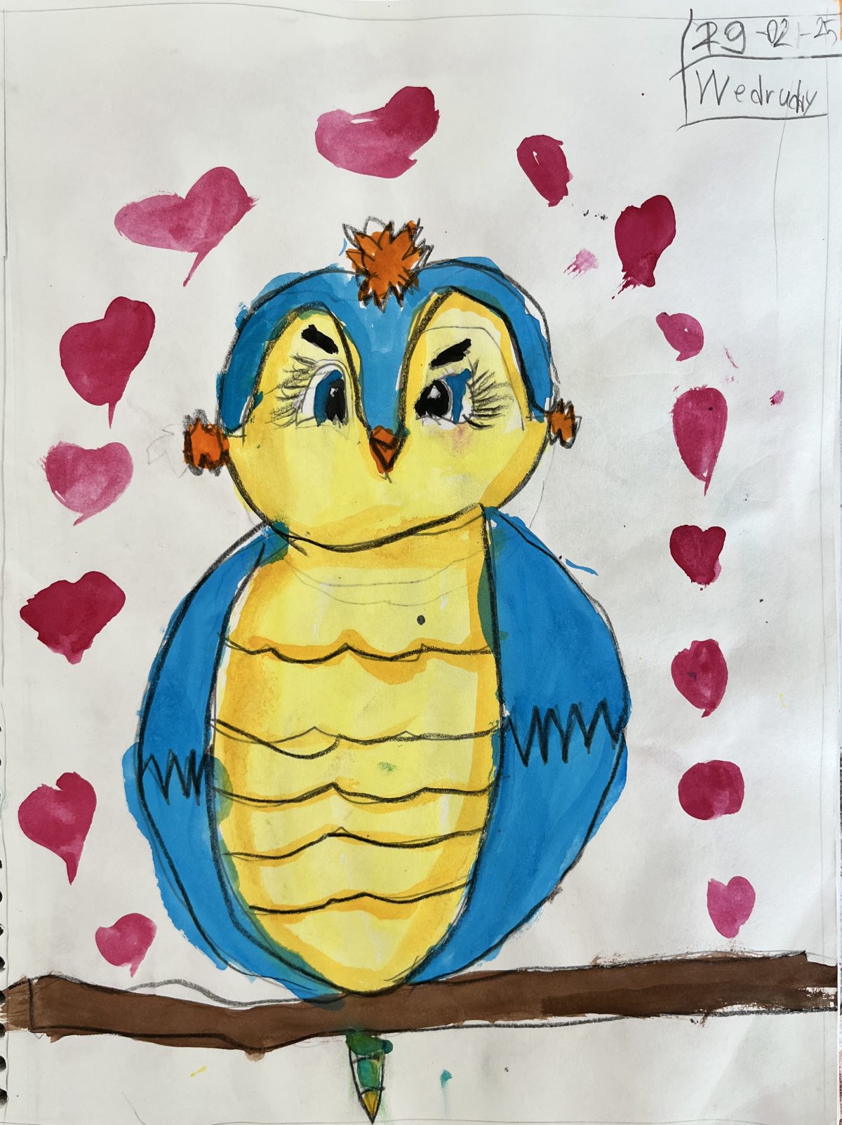 My alter ego is confidence and defiance. I represented this through what I wear and own, showcasing my worth. With my hoop earring, ring, and one of my favorite books, “The Hunger Games,” I demonstrate my confidence and my defiance against caring about others’ opinions. My serious expression signals that I won’t be pushed around, and my pose reflects my self-assuredness. Completing this portrait pencil drawing taught me that I am my own person, complete with flaws and qualities that define me.
