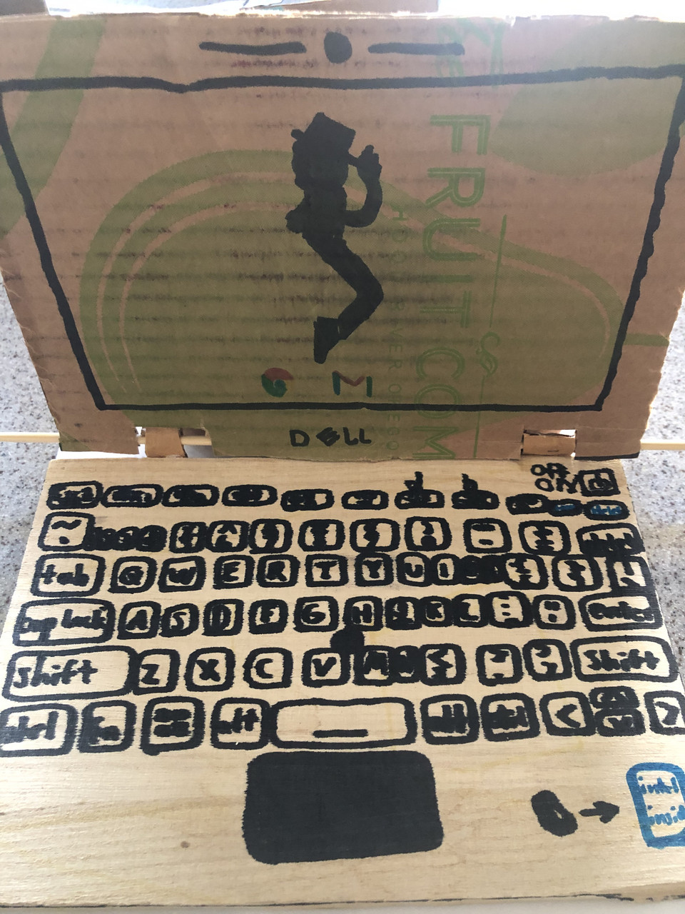 A recreation of a laptop computer styled as a “Dell Chromebook”.