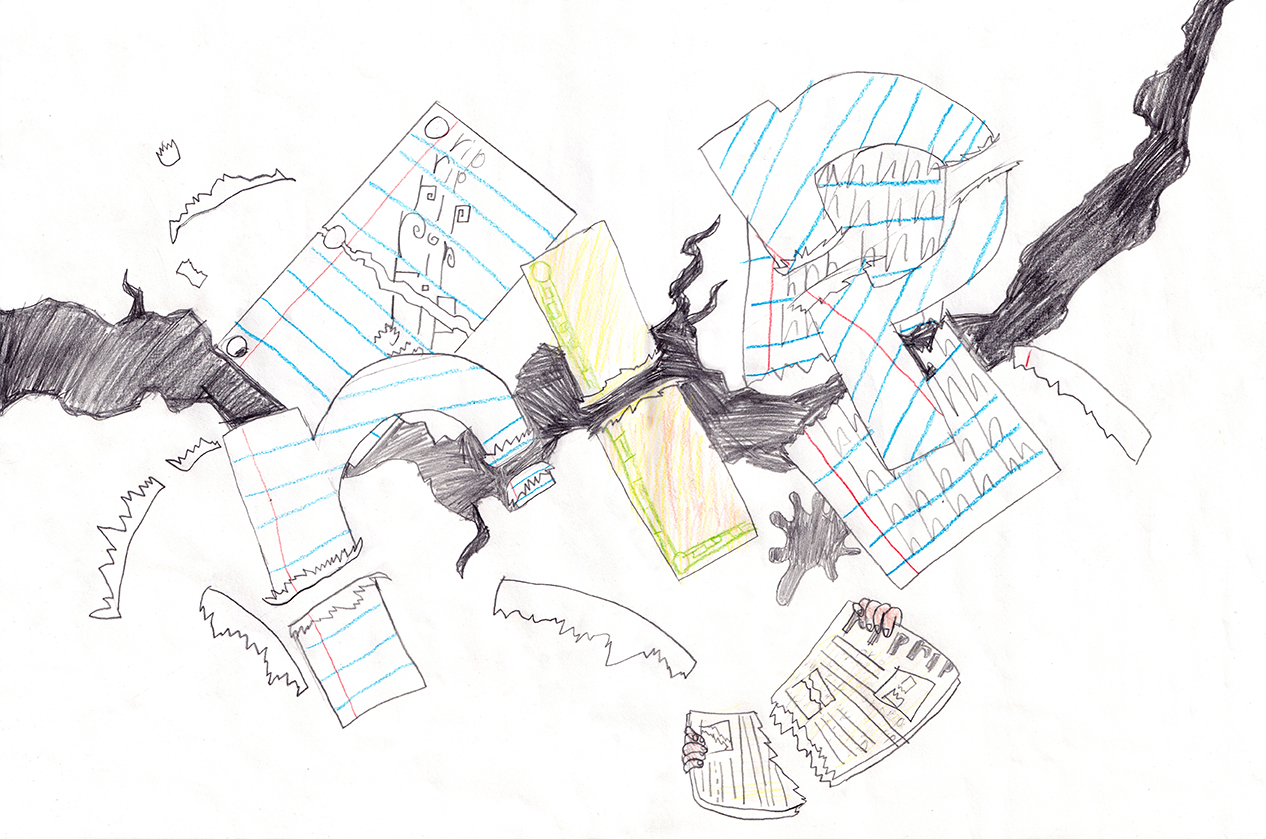 This drawing was done in Art class. The challenge was to illustrate an onomatopoeia.