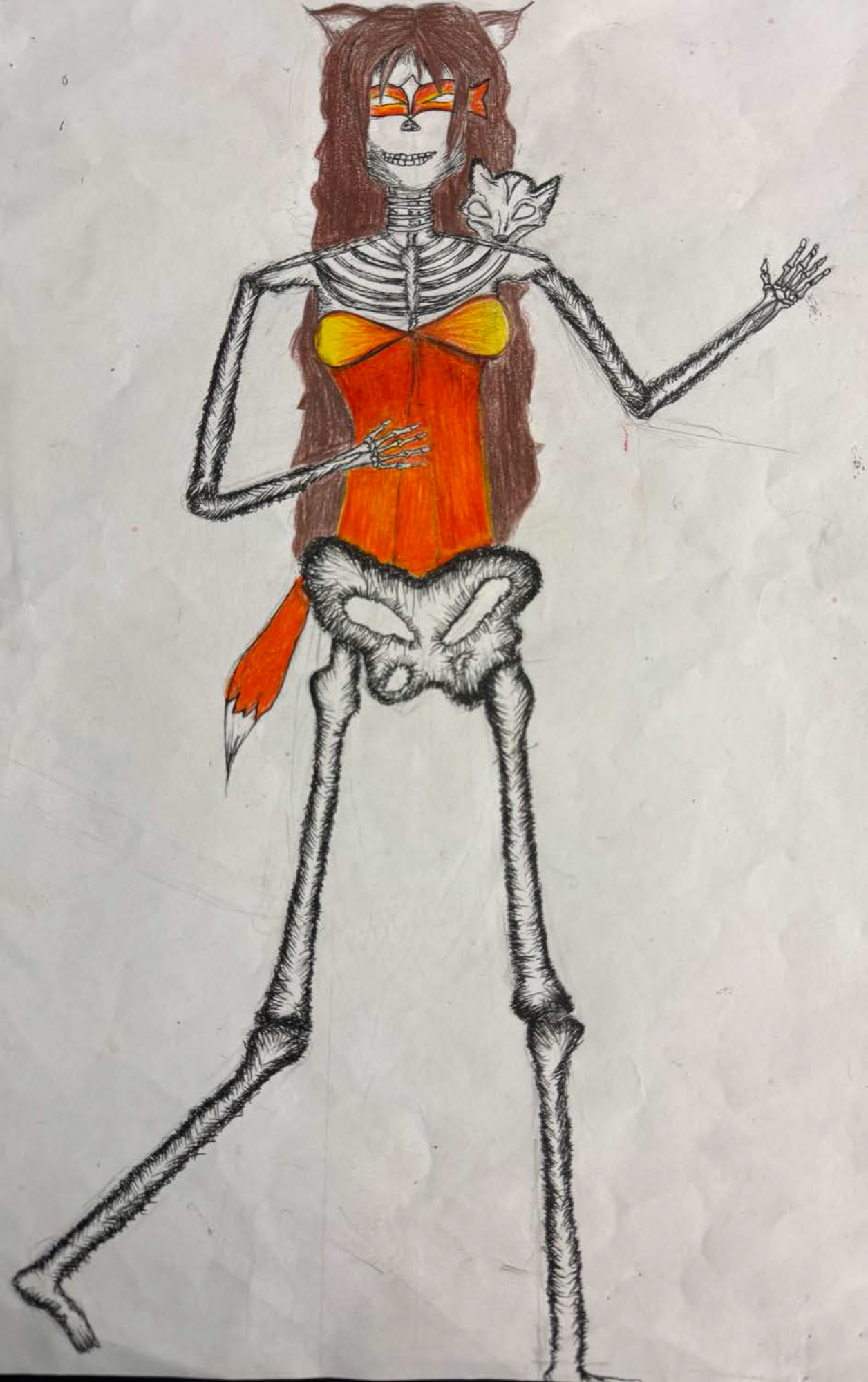 Inspired by D. of the Dead – created my spirit animal super-hero wearing a costume inspired by the colors of a fox and side-kick a fox.
