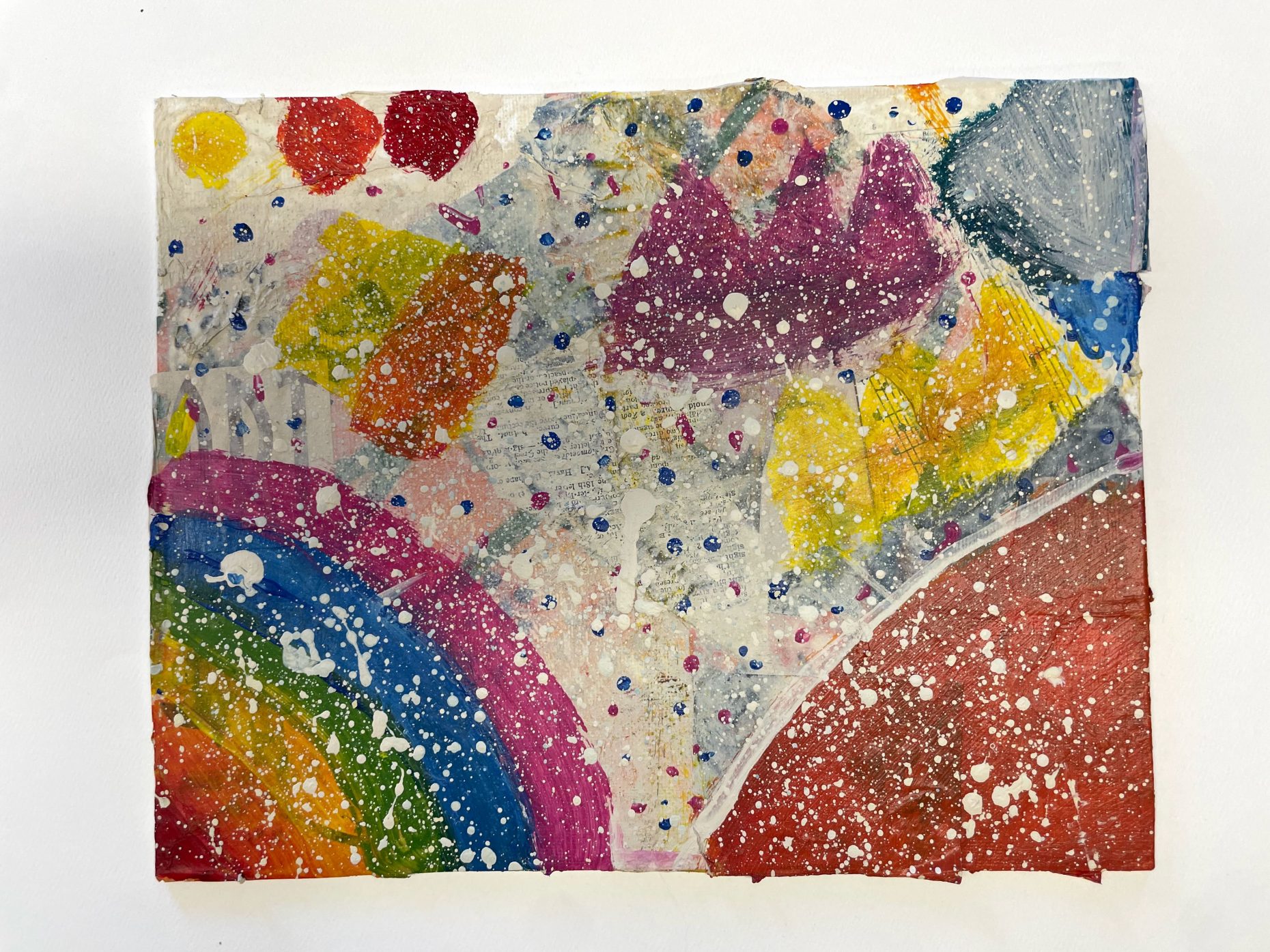 Materials: Acrylic paint, textured paper, and mod podge on canvas