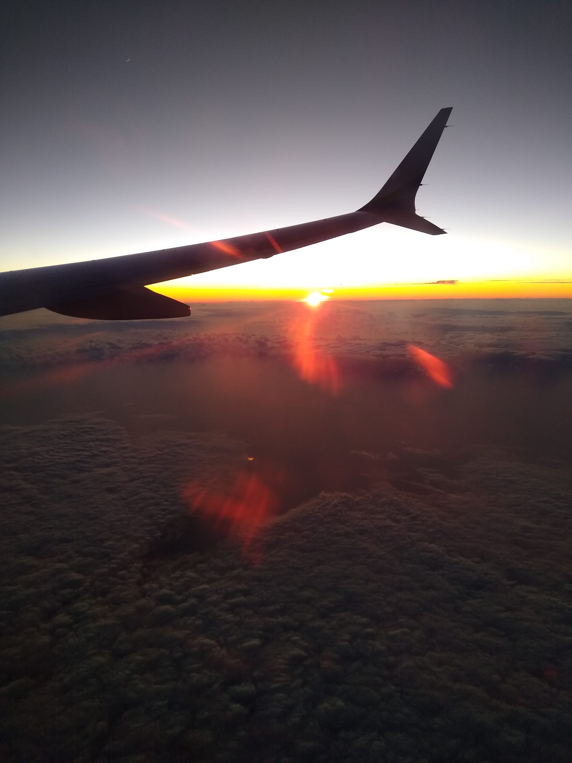 This photo was taken over the ocean. I was on my way from Chicago to Hawaii. The sun was setting and the light reflected the white clouds, underneath is all the water.