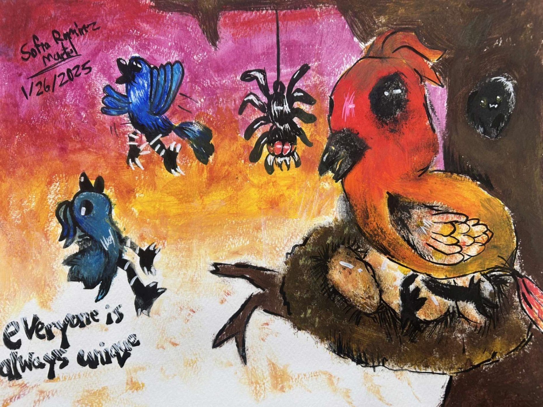 Materials: Watercolor paper, acrylic paint, brushes