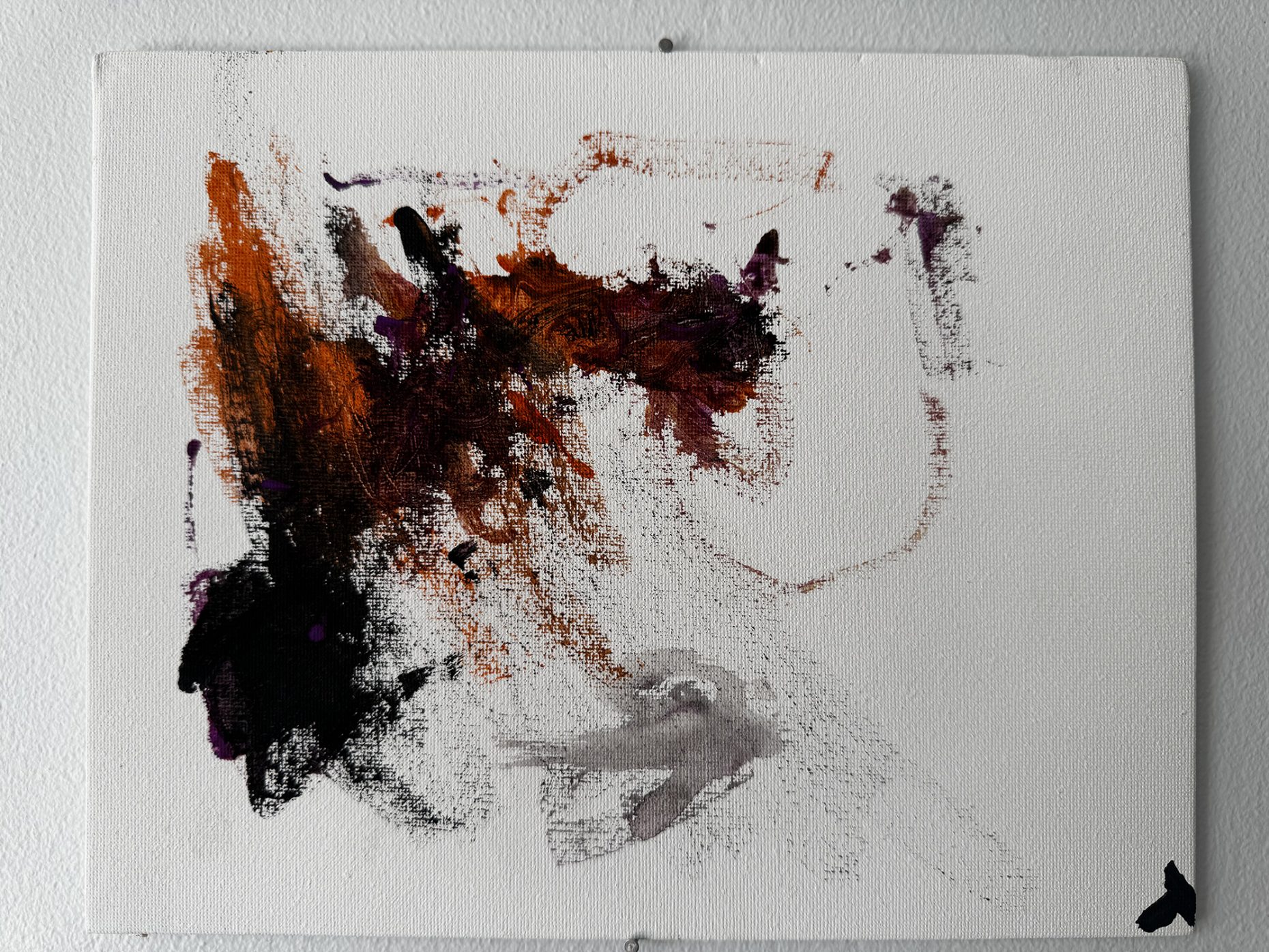 The piece explores color layering with deep, rich colors of a sand filled environment. The artist uses a variety of application methods, allowing semi transparency of the canvas beyond, making the line work a statement, much like the way a rainbow dances to the surface and interacts differently to the surfaces it intersects. The juxtaposition of light and dark, allows the warm orange and deep reds to collide gently with the deep purples and greens in a playful manner. The color layering allows the viewer to understand and appreciate color and the manipulation of it in a much more dynamic way.