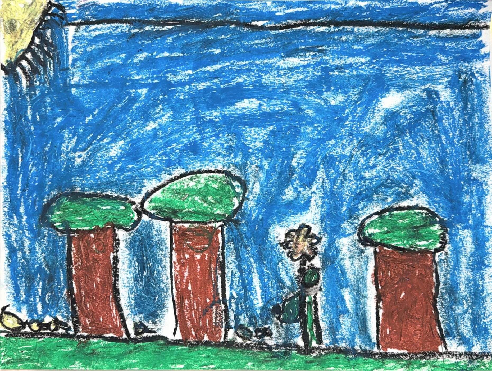 This is a picture of a garden with plants an flowers. I used thick black outlines, like Georges Rouault.