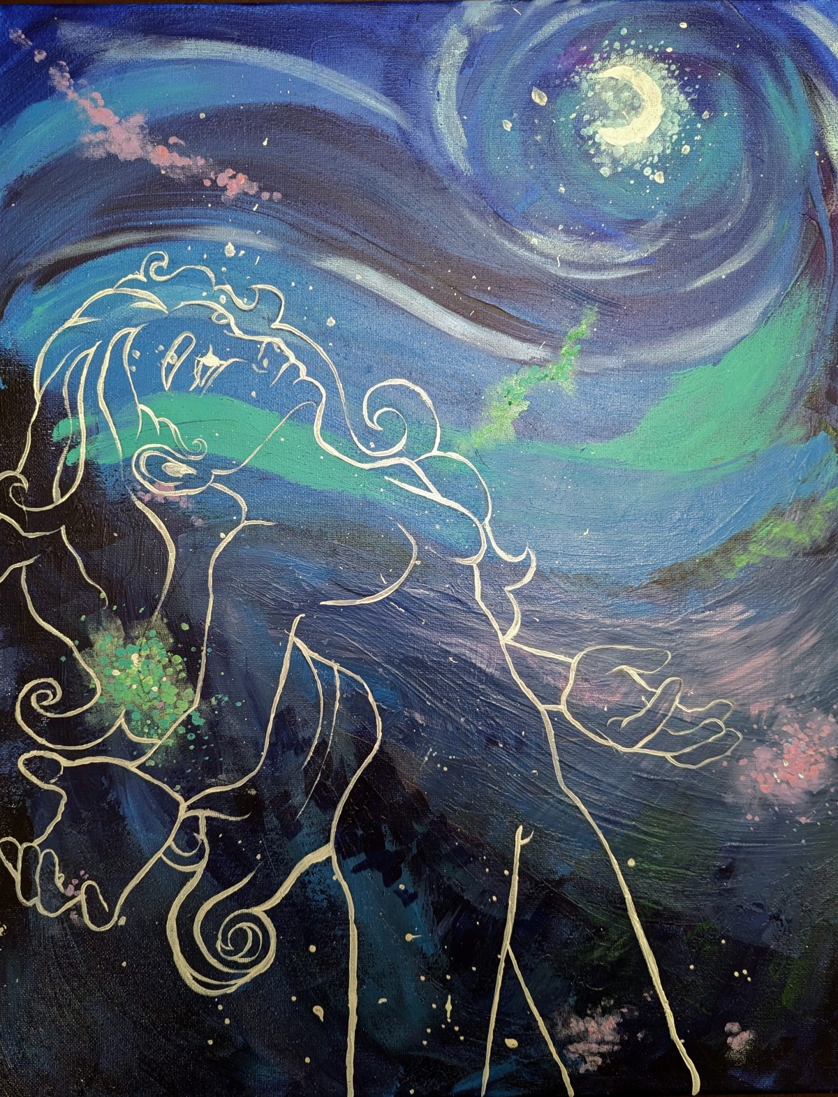 This collage shows the story of The Three Hebrews. It is made to look as though there is a stage production with silhouettes of people in the crowd.