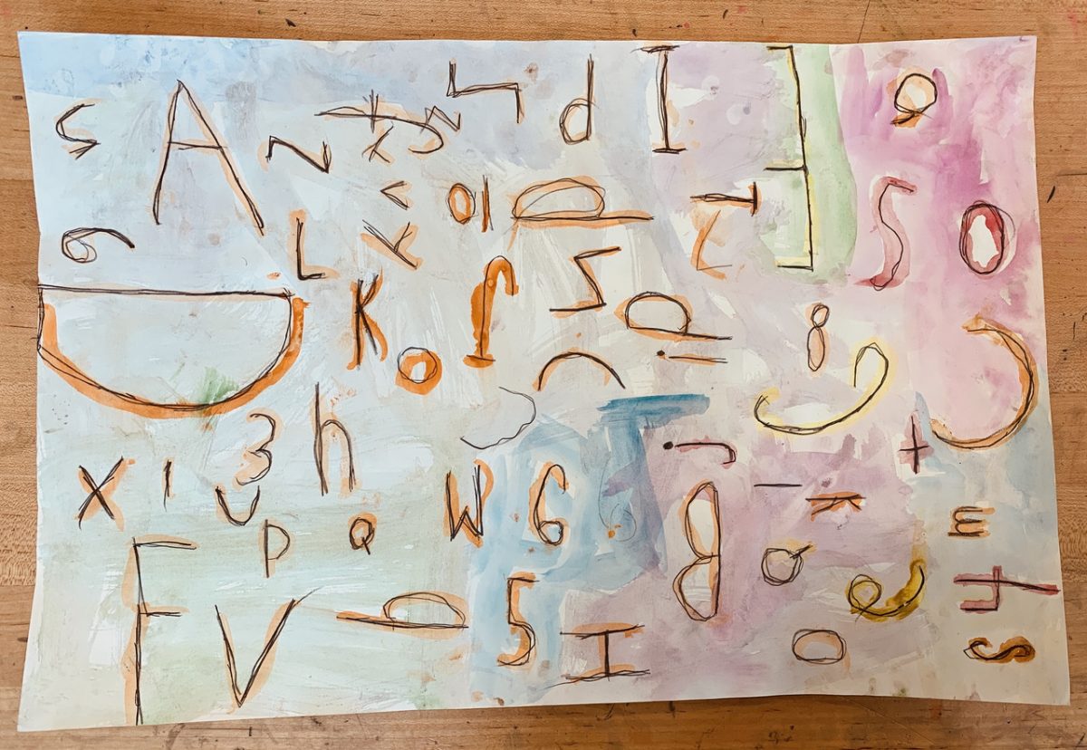 I created the two pieces inside the frame during my Maker Space OST (Out of School Time) class. I used Vector Graphics to draw the picture of Robert Plant and sign my name for the first piece. For the second piece I used Vector Graphics to create the collection of a cat, airplane, football, guitar, drumsticks and a happy stick figure.