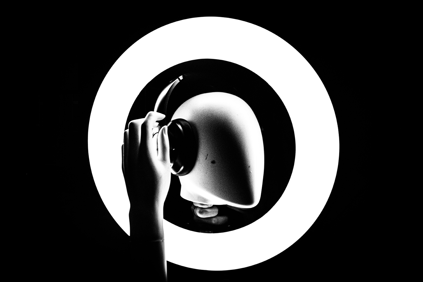 I photographed this mannequin head listening to music in the ring light because music is one of my favorite ways to reduce stress. It fills me with peace and energizes me. I was inspired by the Techno music genre and listening to many artists like Daft Punk and Kraftwerk. I wanted to create an icon for the genre. This photo is part of the Ring Light Series I shot for my Photography I class.