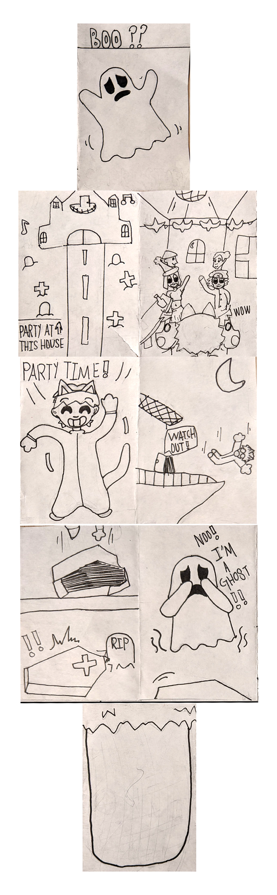 Students created Zines of their own design. Their Zines explored a variety of ideas and themes. Through the sequential nature of the Zine students were able to tell a wide variety of stories as well as explore more non-narrative concepts.