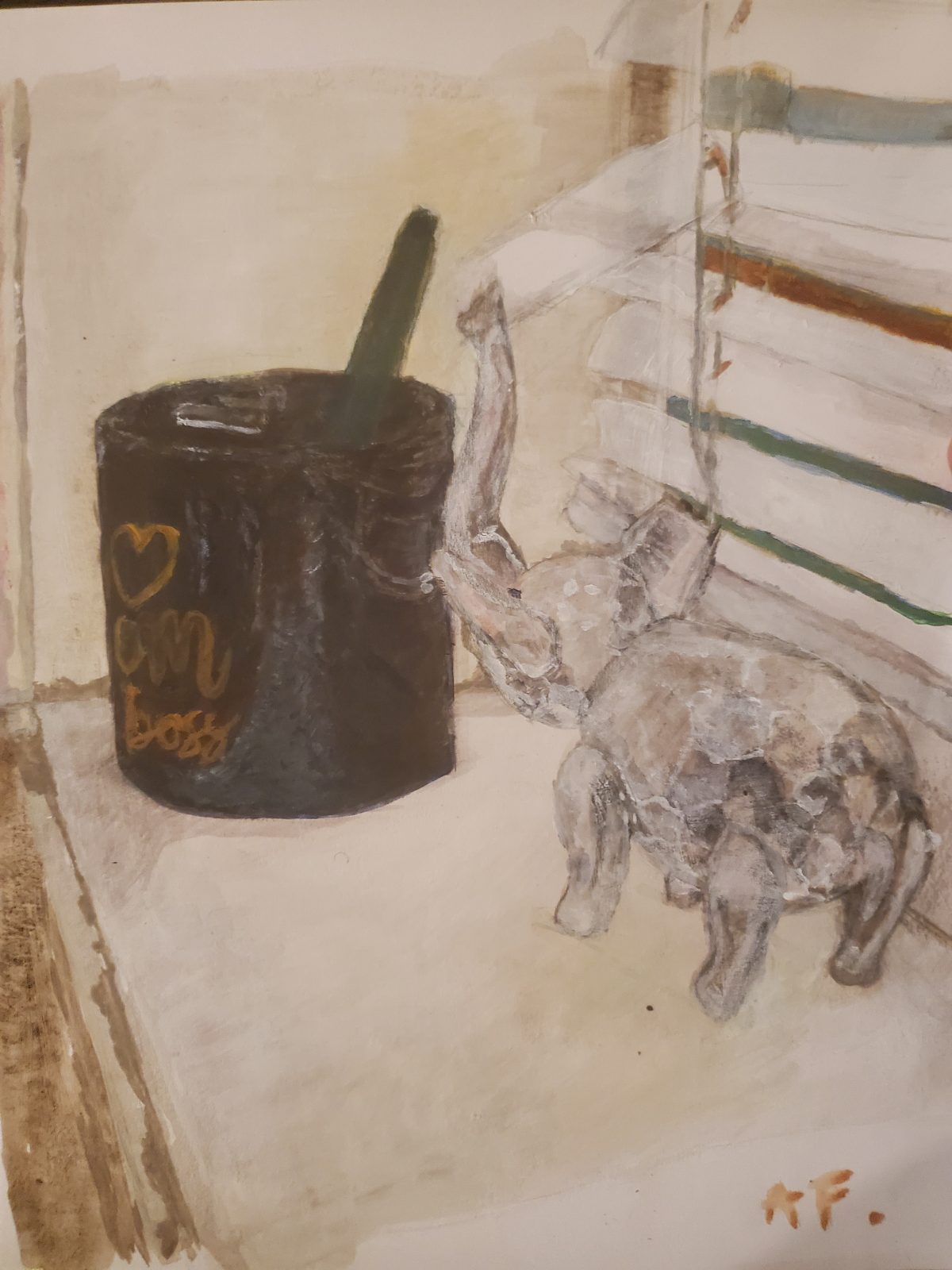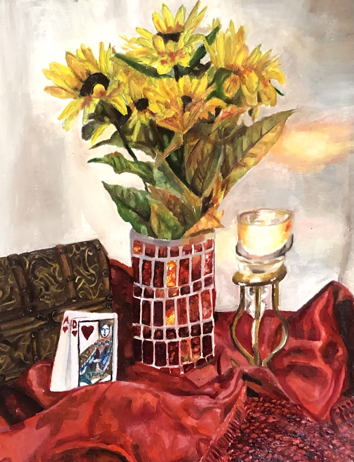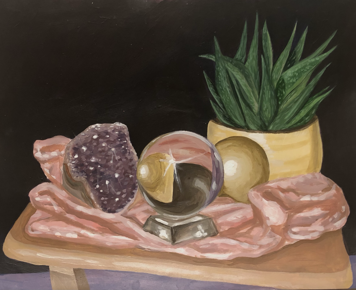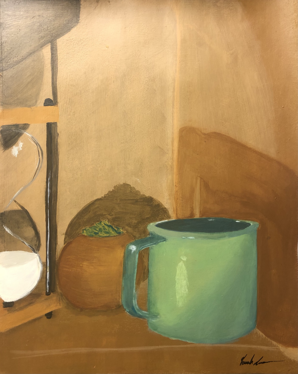 In this exercise, students explored color. As a class, we practiced by making a series of still life paintings with a focus on matching local color. From here, we had our class find significant objects in their home. Considering composition, lighting, and dynamic surfaces (reflective/transparent), our students then painted their own still life — as seen below.